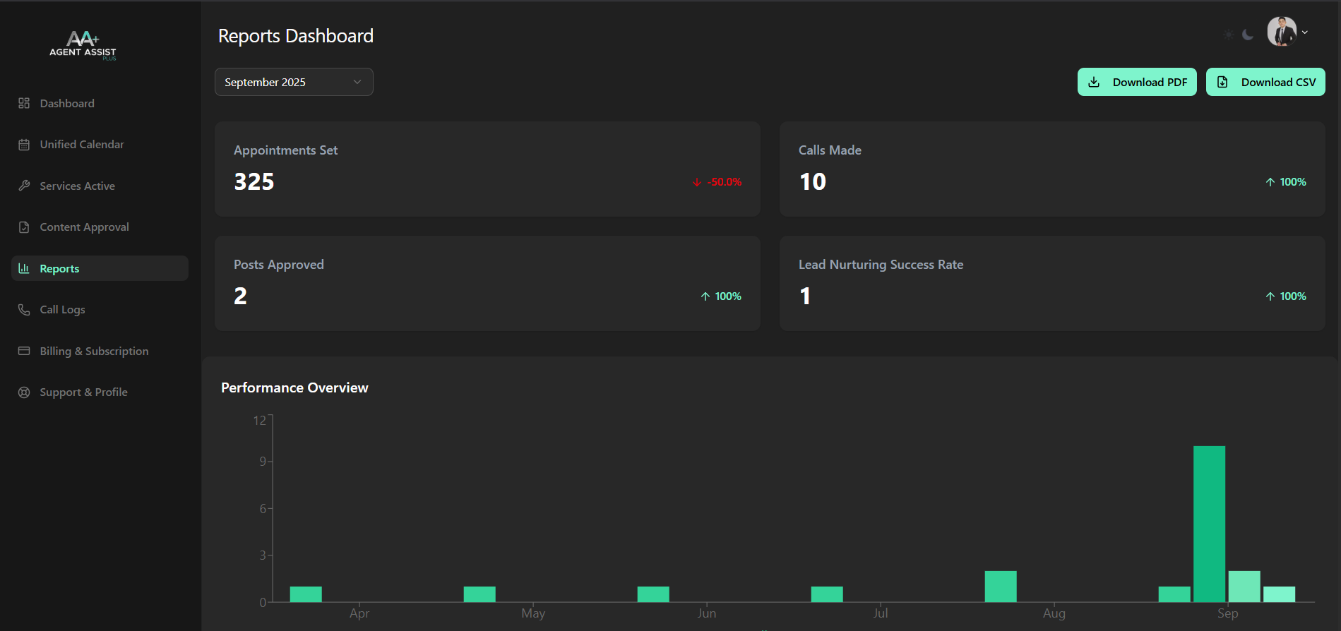 We designed AgentAssistPlus to give real estate professionals a powerful, easy-to-use platform that turns complex workflows into clear, actionable insights. With intelligent dashboards, automation tools, and built-in storytelling features, agents can focus on closing deals, not chasing data.